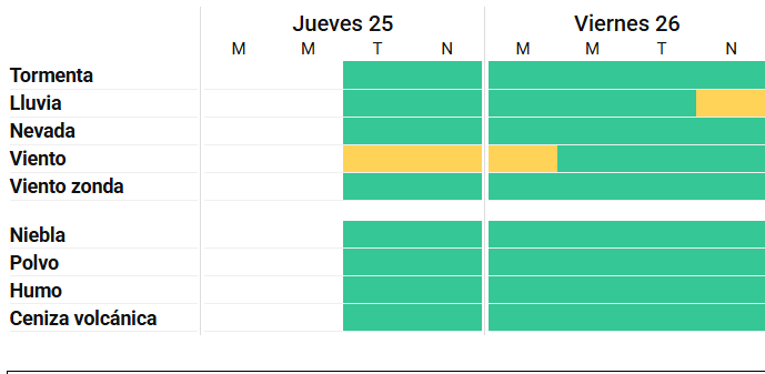Hasta la tarde del viernes 26, se prevén vientos del sector norte con velocidades entre 35 y 55 km/h, y ráfagas que podrían superar los 80 km/h.