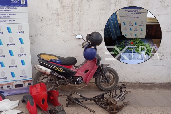 Como resultado de las tareas investigativas, el Juzgado de Garantías N°1 dispuso la orden de allanamiento en el domicilio donde reside Mariano Risso (39). En el lugar se secuestró una motocicleta 110cc color roja, un casco negro, varias plantas de marihuana y motopartes sin documentación respaldatoria.